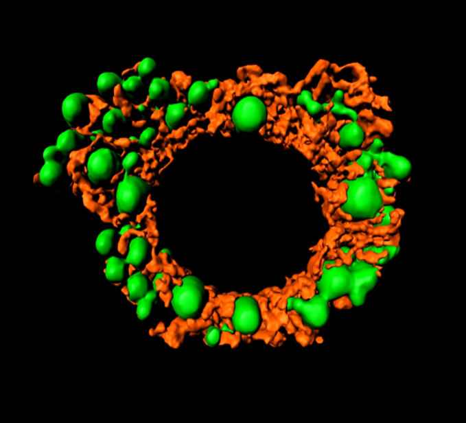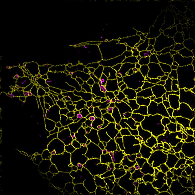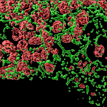 cos7细胞经药物处理后受损裂解的线粒体和内质网渲染