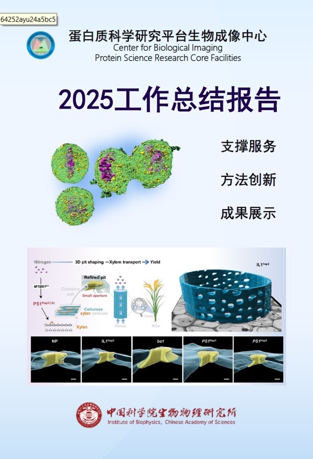 中国科学院生物物理研究所在中国科学院蛋白质科学研究平台二期建设(2007-2011年)当中重点发展了生物显微三维成像技术,建成了具有国际一流水平的生物成像中心。该中心定位于生命科学研究前沿,致力于实现对生物学对象从纳观尺度到介观尺度的高分辨率三维成像技术,通过对生物超微高分辨率三维结构的研究来回答生命科学的关键问题。目前,该中心集成了超分辨率光学显微技术、低温电子显微技术、三维重构技术、低温扫描微加工技术、单分子荧光成像技术、原子力显微技术、光电关联显微成像技术以及一系列生物显微成像样品技术,并承担了北京及周边地区生物显微成像技术服务工作,极大促进了相关生命科学前沿研究的进展,成为我国生命科学基础研究的重要支撑平台。