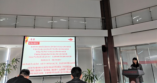 王秀杰教授以"新时代 新征程 学习党的二十大精神"为题,讲述了中国共产党第二十次全国代表大会的盛况,解读了党的二十大精神,分享了聆听习近平总书记重要讲话的深切体会。她强调,党的二十大是在全党全国各族人民迈向全面建设社会主义现代化国家新征程、向第二个百年奋斗目标进军的关键时刻召开的一次十分重要的会议,是一次高举旗帜、凝聚力量、团结奋进的大会。大会作出的各项部署和取得的各项成果,必将对全面建设社会主义现代化国家、全面推进中华民族伟大复兴,对夺取中国特色社会主义新胜利发挥指导和保证作用。她强调,习近平总书记在报告中指出,"当代中国青年生逢其时,施展才干的舞台无比广阔,实现梦想的前景无比光明。"我们要牢记习近平总书记的嘱托,以党的二十大精神为今后的工作指南,更加紧密地团结在党中央周围,坚决落实党的二十大报告中"增强自主创新能力"、"加快实现高水平科技自力自强"的部署,潜心科研,矢志创新,以优异的科研成果助力下一个百年奋斗目标的早日实现。