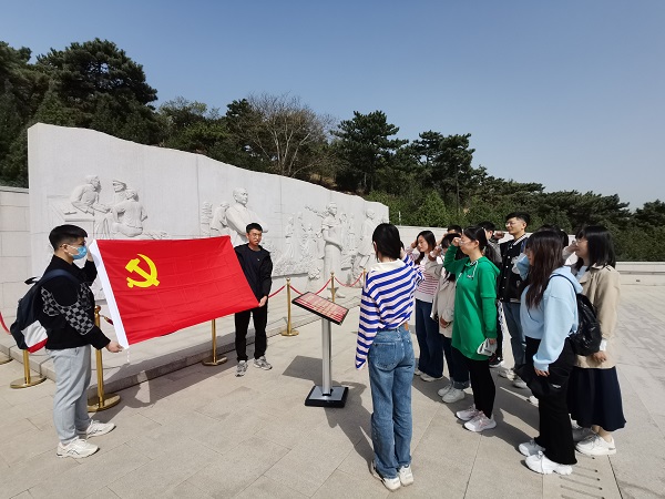 参观活动结束后,党支部副书记丁珂带领全体党员同志,面朝党旗和纪念碑重温入党誓词,经过这些隐秘战线的烈士们精神的洗礼,让同志们更加坚定了共产主义信念和信仰。烈士们为革命事业赴汤蹈火的精神,让大家对如今祖国的繁荣与和平倍感珍惜,全体党员同志们要牢记习近平总书记的要求,不忘初心、牢记使命,务必谦虚谨慎、艰苦奋斗,务必敢于斗争、善于斗争,坚定历史自信,增强历史主动",才能谱写出新时代中国特色社会主义绚丽华章的精神内涵。