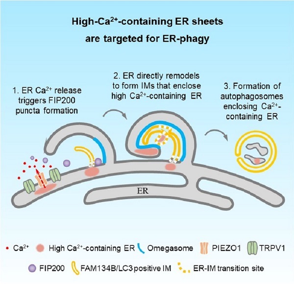 2026年4月2日,中国科学院生物物理研究所张宏团队在《Molecular Cell》发表题为"Mechanosensory channels mediate Ca2+ transients to trigger assembly of autophagosome initiation sites for degradation of ER subdomains"的研究论文,首次揭示机械感知通道介导Ca2+瞬变触发内质网片段降解的分子机制。该发现为内质网功能障碍相关疾病的治疗提供了新的研究方向。