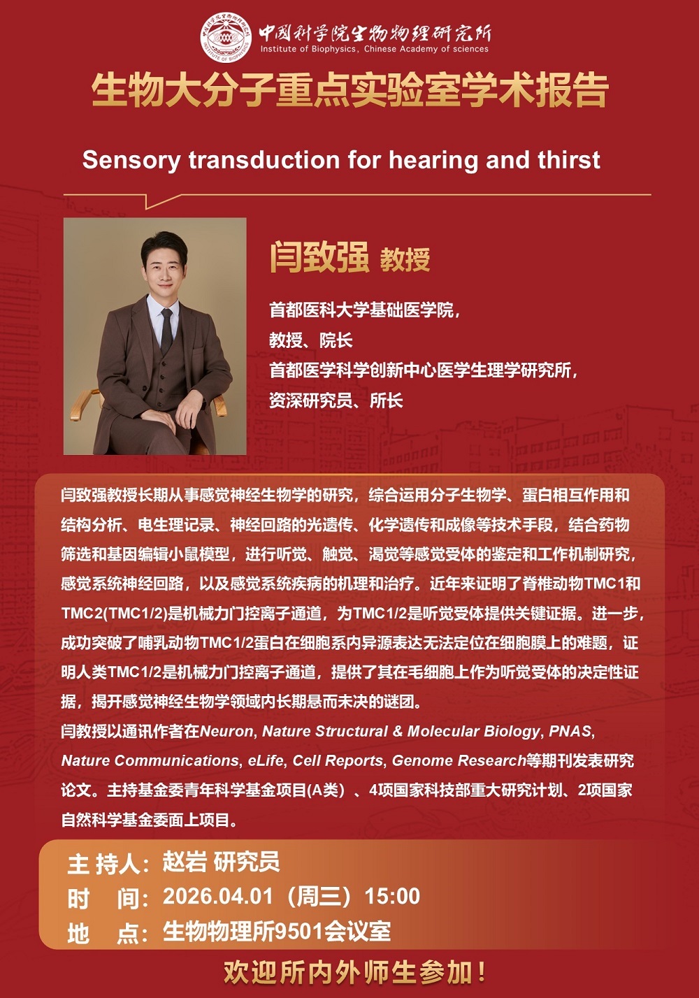 2026年1月23日中午11:30 研究组学术报告:神经信号传递的分子机制