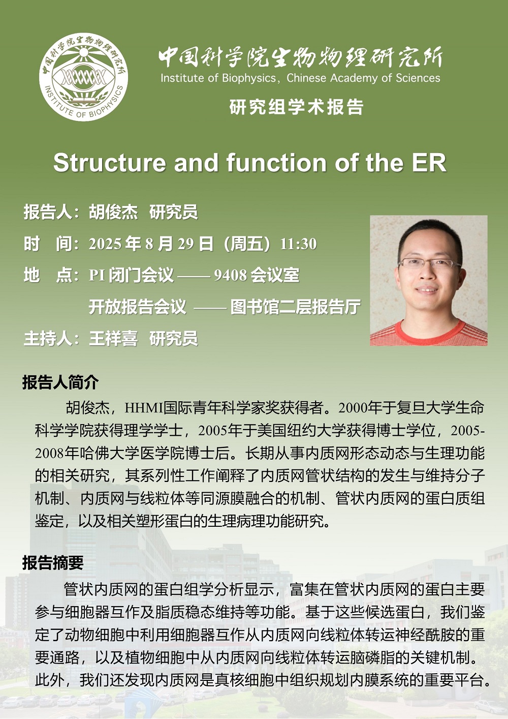 2025年8月29日中午11:30 研究组学术报告:Structure and function of the ER
