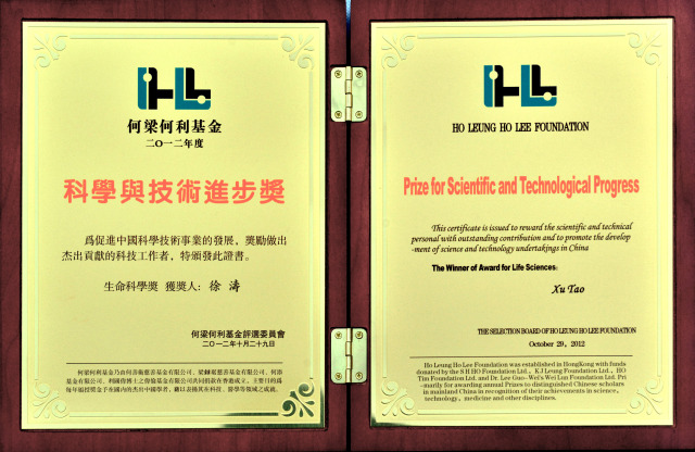 10月29日下午,香港何梁何利基金2012年度颁奖大会在北京钓鱼台国宾馆举行。中共中央政治局委员、国务委员刘延东,全国人大常委会副委员长路甬祥,全国政协副主席、科学技术部部长万钢,中国科学院院长白春礼等出席颁奖大会并为获奖者颁奖。中国科学院生物物理研究所所长徐涛研究员荣膺2012年度何梁何利基金“科学与技术进步奖”。
