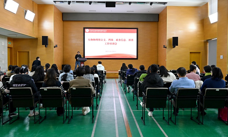 2025年11月19日,生物物理所举办公文、档案、政务信息及科普工作培训会,本次会议由综合处郭宗慧处长主持,各研究组与职能部门70余人参加。培训聚焦科技传播...
