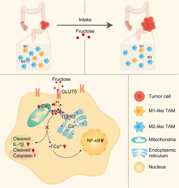 该研究揭示了果糖作为信号分子通过抑制M1-like TAMs极化促进结直肠癌发生和生长的新功能,丰富了果糖调控细胞活性的作用机制。