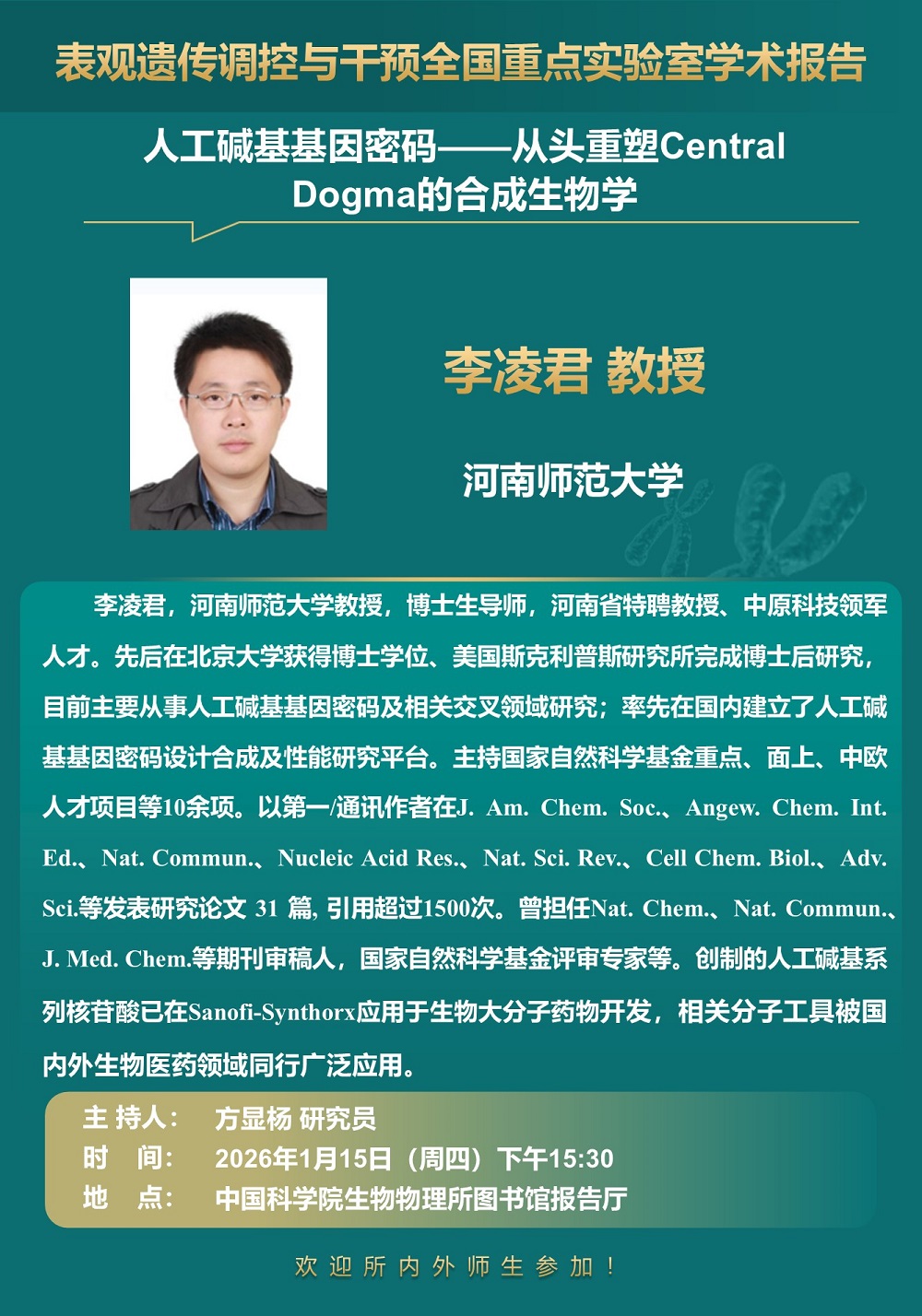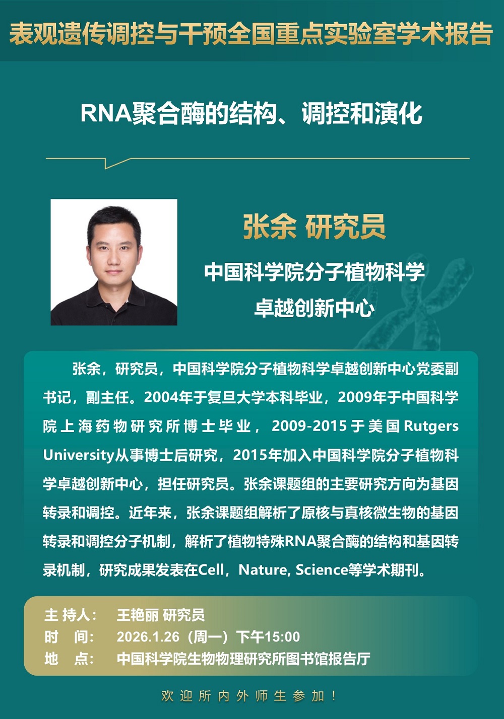 2026年1月26日下午15:00 表观遗传调控与干预重点实验室学术报告:RNA聚合酶的结构、调控和演化