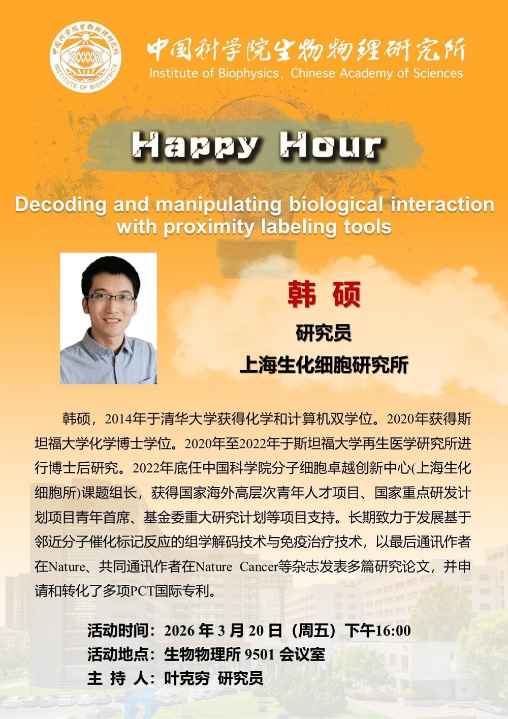 2026年3月20日下午16:00 Happy Hour:Decoding and manipulating biological interaction with proximity labeling tools