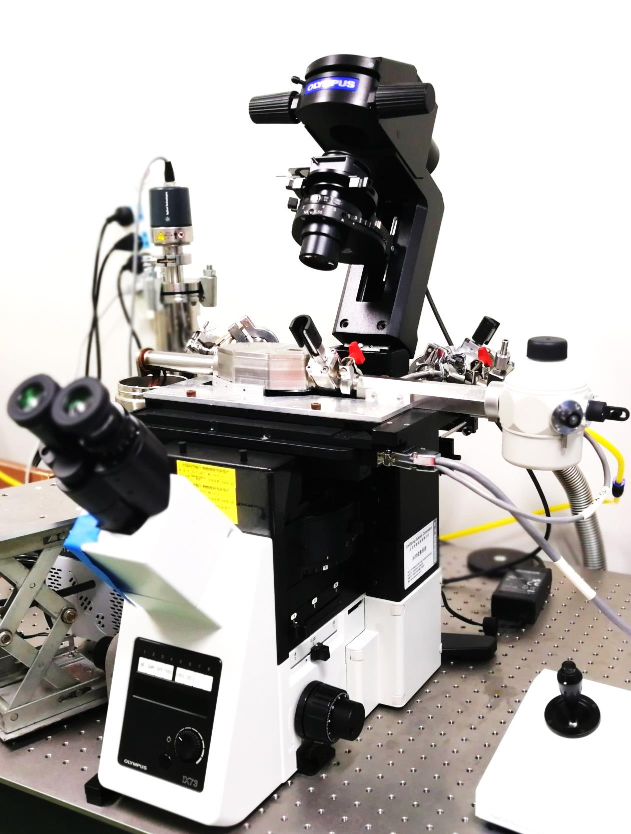 利用荧光显微镜和电子显微镜对胞内特定分子机器同时进行高精度定位和高分辨率超微结构解析的光电关联显微成像技术,可以实现在较大视野内对目标分子进行快速荧光定位,而后利用电镜成像获得胞内超微结构甚至大分子复合物的结构信息,从而获得分子机器在细胞原位的高分辨率三维结构信息。为了攻克冷冻光电关联成像流程的技术难题,生物成像中心自主研发了一种基于高真空装置的冷冻关联成像系统的设计思想,设计了一种新型的可用于冷冻样品光电关联成像的高真空光学冷台HOPE(High-vacuum Optical Platform for cryo-CLEM),HOPE可与透射电镜冷冻样品杆适配连接,完成荧光定位后样品将随冷冻样品杆被转移进电镜当中进行高分辨率数据采集,同时结合光电关联定位软件,可以实现大视野光学定位成像与电镜成像的精确匹配,有效提高关联成功率和数据采集效率。HOPE还可以独立搭载在不同的荧光显微镜上,结合冷冻样品杆自带冷却装置的优势,系统整体操作便捷;腔室真空设计可以有效隔离冷冻样品与光学物镜镜头之间的热传递,使HOPE系统不必使用特殊设计的物镜镜头,同时也避免了光学成像窗口、腔壁结露甚至结霜的问题。HOPE系统是对现有冷冻成像技术的提升和扩展,可以有效降低冷冻光电关联成像的技术门槛,提高了实验的稳定性和可靠性。
