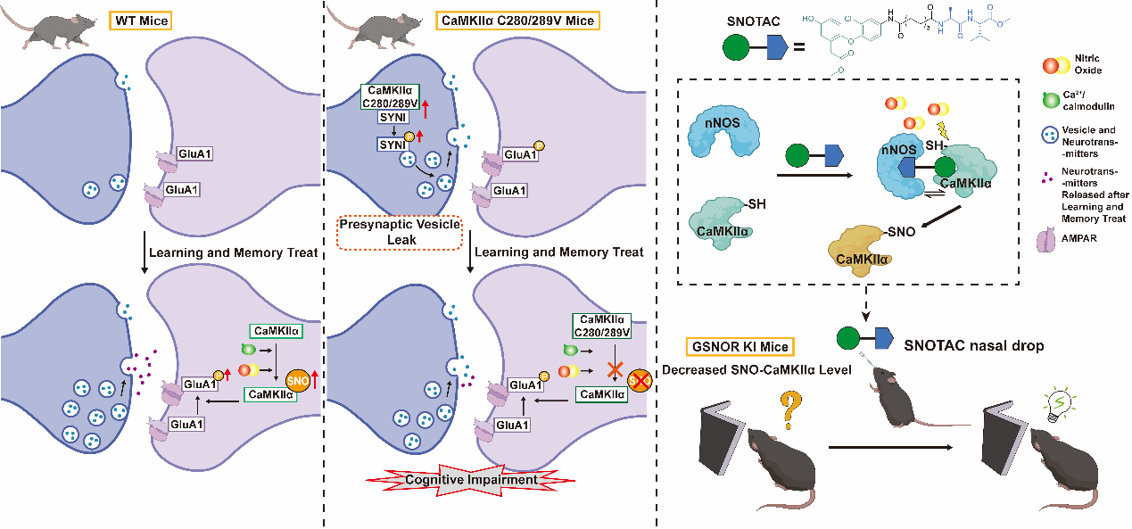 图. CaMKIIα亚硝基化修饰及其精准调控在学习和记忆中发挥关键作用