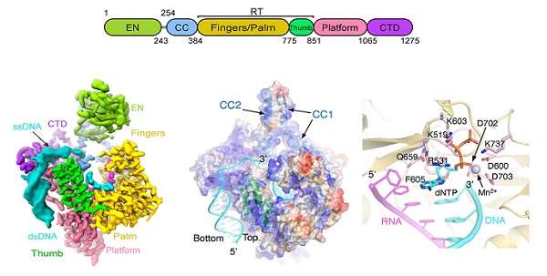 图1:LINE-1 ORF2p功能逆转座复合物的结构