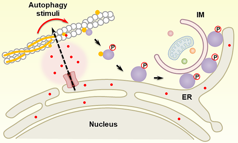 张宏研究组揭示钙离子/钙调蛋白依赖性蛋白激酶II β(CaMKIIβ)解码内质网钙离子瞬变以触发自噬体形成