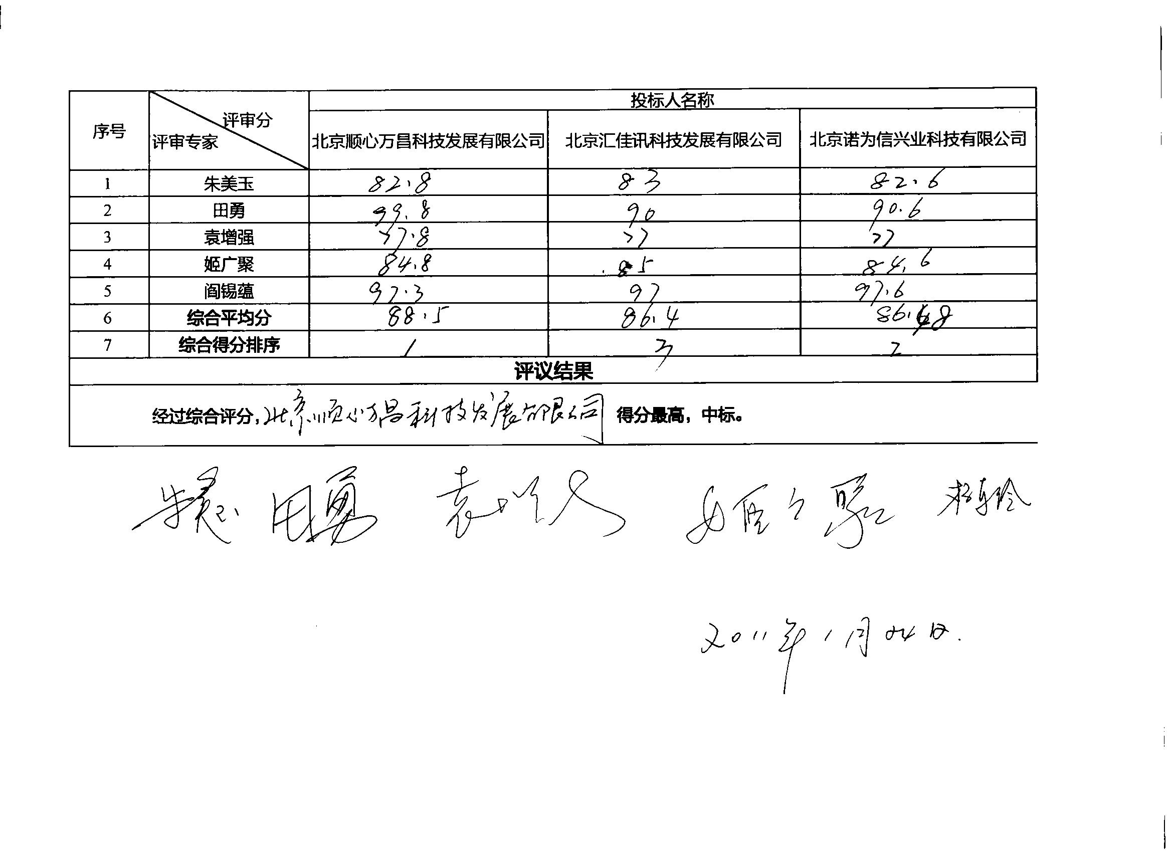 参与投标公司(3家):北京顺心万昌科技发展有限公司、北京汇佳讯科技发展有限公司和北京诺为信兴业科技有限公司。