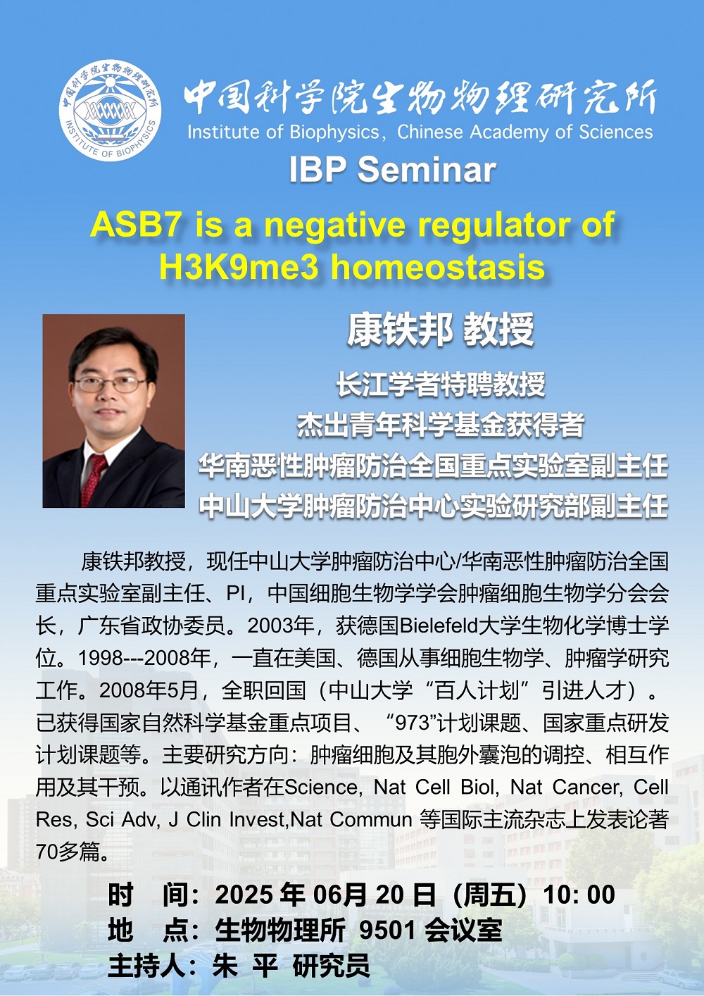 2025年6月20日上午10:00 IBP Seminar:ASB7 is a negative regulator of H3K9me3 homeostasis