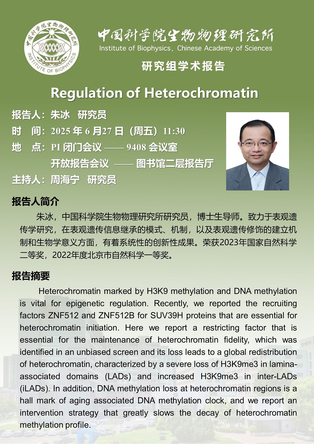 2025年6月27日中午11:30 研究组学术报告:Regulation of Heterochromatin
