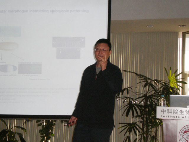11月28日,应生物物理研究所焦仁杰研究员的邀请,美国辛辛那提儿童医院(Cincinnati Children’s Hospital)马骏教授来访生物物理所,并在图书馆报告厅做了题为“understanding how positional information is encoded”的学术报告。