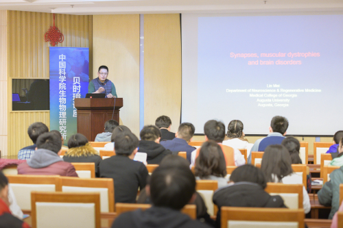 应中国科学院生物物理研究所脑与认知科学国家重点实验室王晓群研究员的邀请,美国乔治亚州研究联盟杰出神经科学家,美国乔治亚奥古斯塔大学神经科学与再生医学系主任梅林教授访问生物物理所做学术交流活动。于2015年12月23日下午14:00在生物物理研究所蛋白质科学楼9501会议室做了题为“Synapse Formation, Muscular Dystrophy and Brain Disorders”的“贝时璋讲座”报告。报告由王晓群研究员主持,来自生物物理所、遗传与发育研究所、动物所以及北京大学等科研院校的广大科研人员聆听了报告。