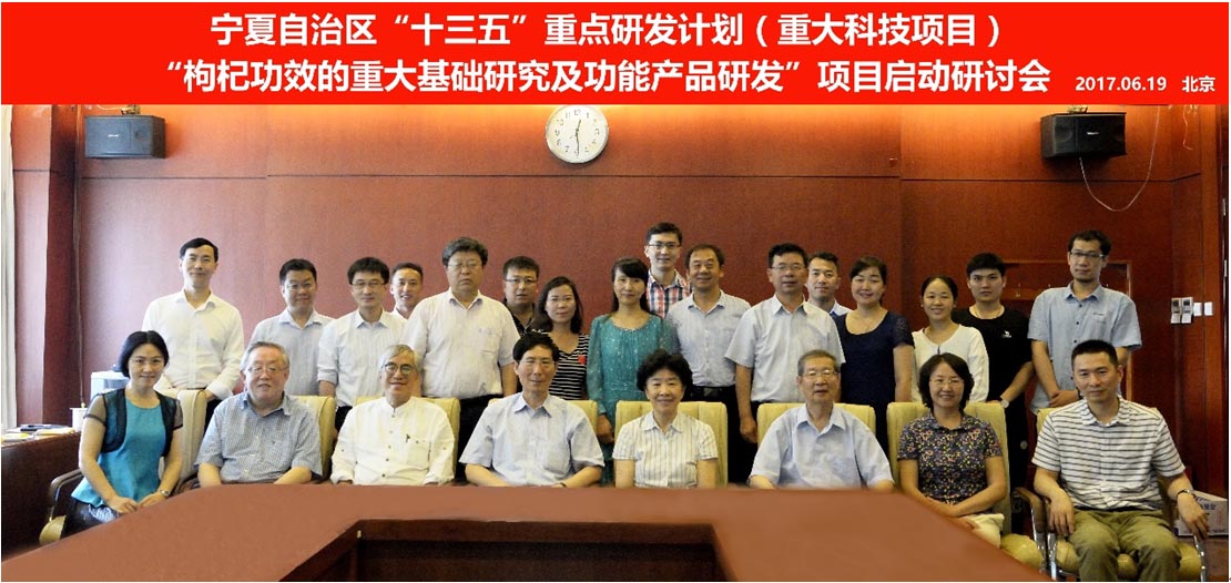 2017年6月19日,宁夏自治区“十三五”重点研发计划(重大科技项目)“枸杞功效的重大基础研究及功能产品研发”项目实施研讨会在项目承担单位中科院生物物理所召开。项目首席科学家王志珍院士、项目主要骨干成员陈润生院士、陈凯先院士、苏国辉院士、仝小林教授、王峥涛教授、陈畅研究员、银川科技创新与产业育成中心主任任越、中科院西安分院分党组书记、副院长杨星科、中科院前沿科学与教育局生命科学处处长沈毅、中科院生物物理所副所长孙命、科技处处长许航以及来自中科院生物物理所、中科院上海药物所、暨南大学、上海中医药大学、中国中医科学院广安门医院、宁夏大学、宁夏医科大学等单位的专家四十余人参加了会议。