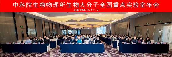 生物大分子全国重点实验室 2025 年度学术年会于 2025 年 11 月 2-3 日在北京市平谷区中信金陵酒店顺利召开。实验室学术委员会主任贺福初院士、委员王志珍院士、宋保亮院士、李林院士、段树民院士、夏宁邵院士、徐涛院士、张宏院士、张先恩研究员、肖百龙教授、许瑞明研究员、许文青教授等专家及嘉宾、实验室研究组长、学术骨干、研究生等近200 人出席会议。生物物理所副所长朱冰研究员应邀参会。