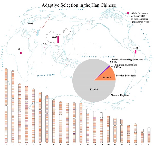 适应性选择是影响人类表型发展和分化以及种族人群之间疾病易感性差异的主要因素之一。基因组中非编码元件占据超过98%的区域,和蛋白编码元件一样,非编码元件在表型塑造过程中发挥重要作用。近年来,人类基因组范围的非编码调控元件如增强子、启动子得到了系统的鉴定与注释,然而这些非编码调控元件在人群适应性选择中所扮演的角色仍缺乏系统的研究。