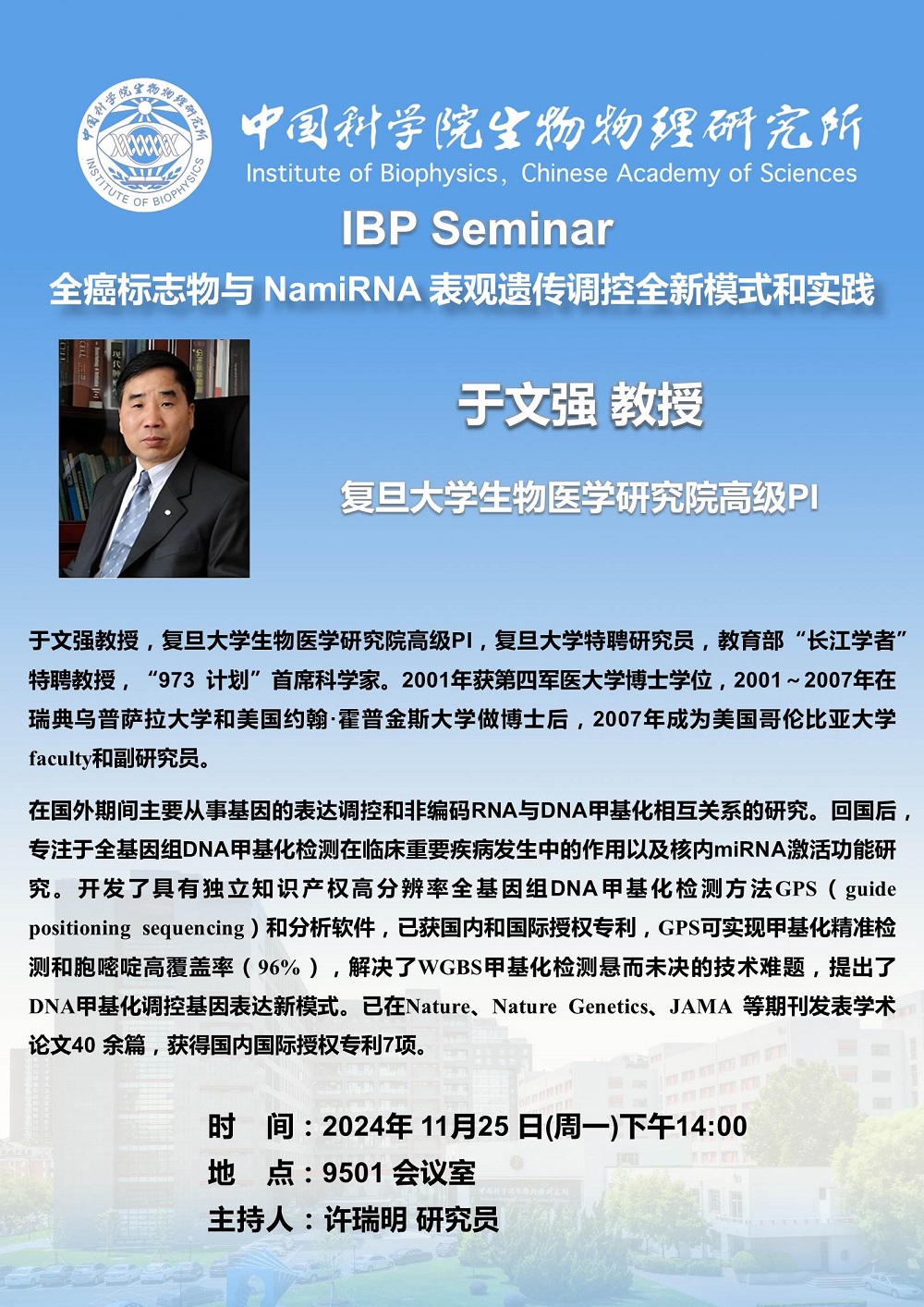 2024年11月25日下午14:00 IBP Seminar:全癌标志物与 NamiRNA 表观遗传调控全新模式和实践
