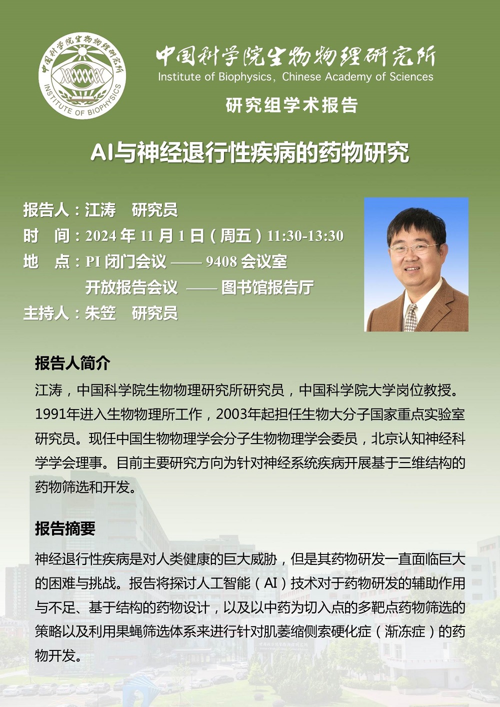 2024年11月1日中午11:30 研究组学术报告:AI与神经退行性疾病的药物研究