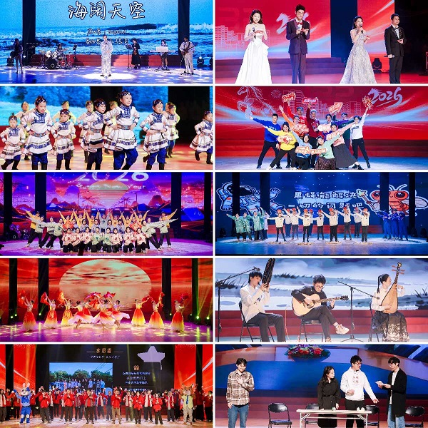 生物大分子重点实验室带来的舞蹈《Zoo》热情洋溢、活力四射。李岩研究组的歌舞表演《果蝇飞天记》,讲述了生物物理所的"果蝇小勇士"们成功登上中国空间站的故事。管理支撑部门带来舞蹈《万疆》,优美的舞姿伴着绚丽的光影,表达了对山河的礼赞和奋斗者的敬意。认知科学与心理健康重点实验室全部研究组长带领职工和研究生表演歌曲串烧《科研阵线联盟》,是本次团拜会上演员人数最多的节目。由吉他、琵琶和笙组成的器乐合奏《春归》,伴着武术表演,展现出浓浓中国风。IBP老同志合唱团表演合唱《组歌:革命者永远是年轻》,带领观众走进那段激情燃烧的峥嵘岁月。科学研究平台表演的情景剧《燃动南沟泥河》,用轻松幽默的方式,提醒大家在忙碌工作中也要注意科学锻炼,为祖国健康工作五十年。脱口秀《科学不玄学》讲述了科研生活的甜苦喜忧,引发阵阵笑声。